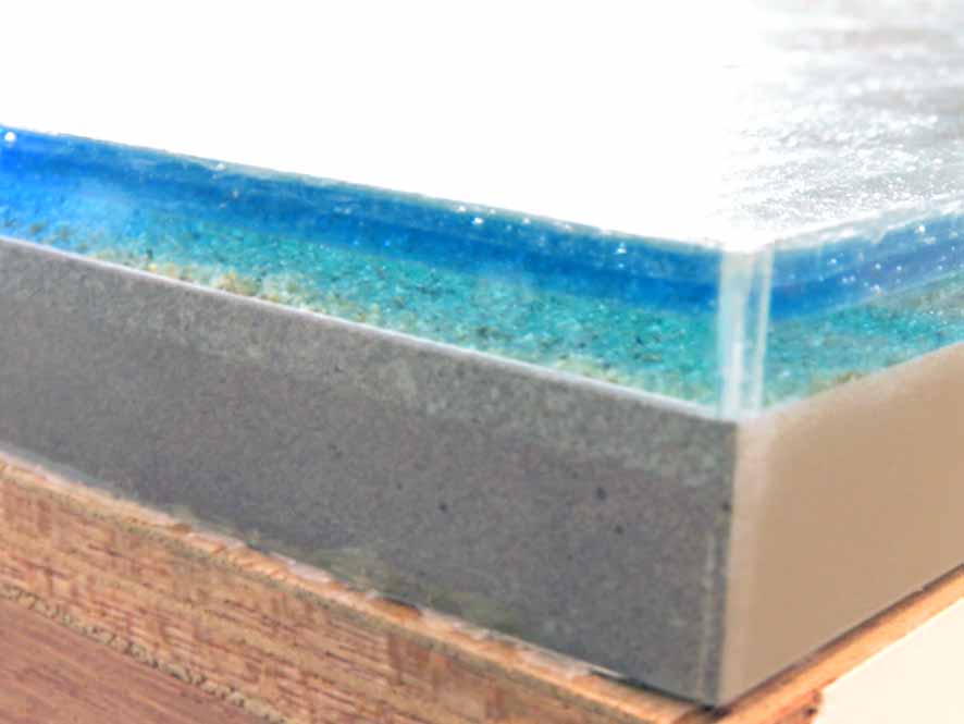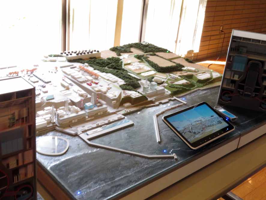 「汚染された海」と言われますが・・・水自体はとてもきれいとのこと。本来の美しさを伝えるためにも、ジオラマの大和工芸さんが海の砂を敷き詰めてきれいなジオラマを作ってくださったそうです。よくよく見るとテトラポットも!!!