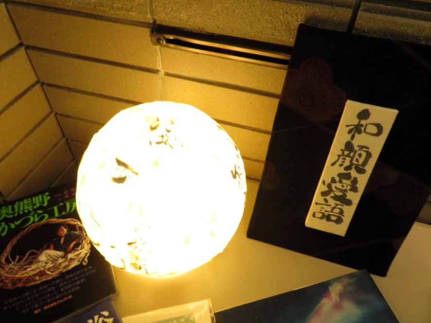 硬いテーマの中にも ほっとできる本や灯りを集めて。